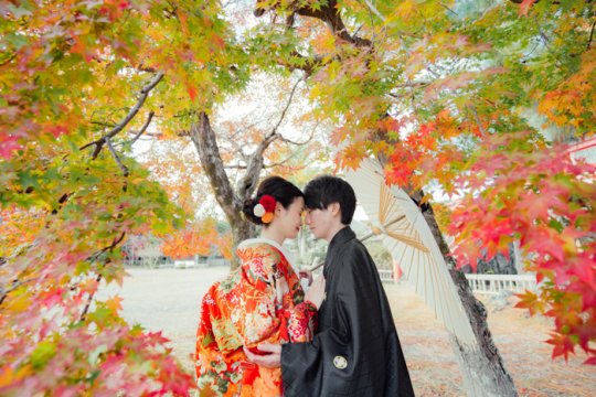 秋の大阪和装前撮り!紅葉に合わせるのは色打掛か白無垢かどっち?